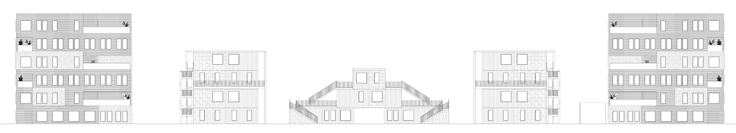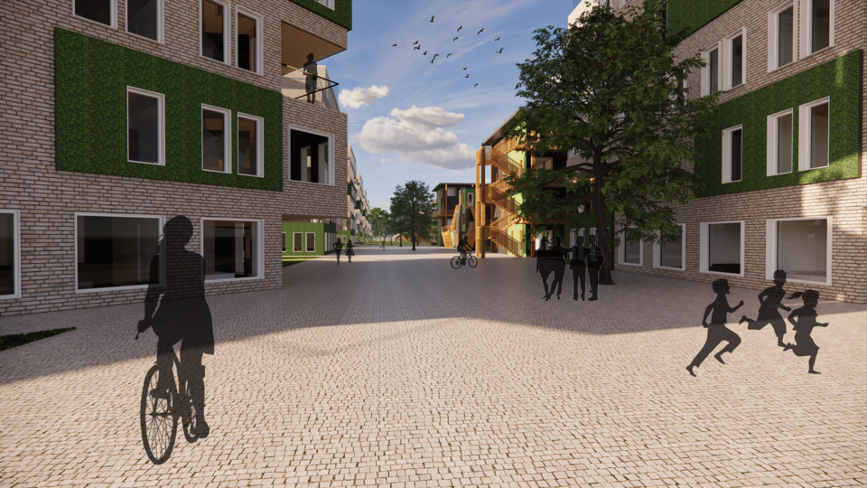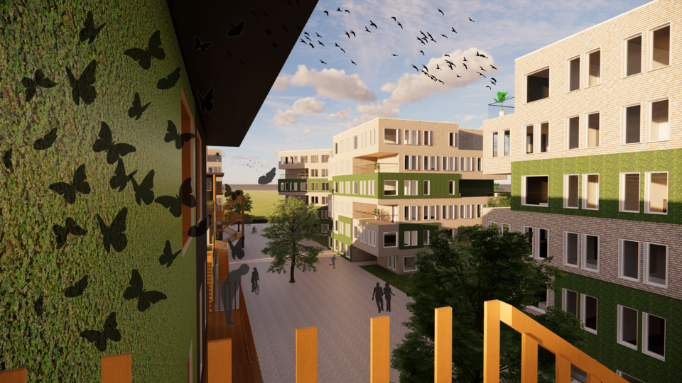 De gevelafwerking is gedeeltelijk gestandaardiseerd. In onze visie blijft de gehele achter constructie altijd gelijk maar wordt alleen het laatste “laagje” anders. In het concept hebben we een achter constructie bedacht die zowel met hout, steen strips als een vegetatie gevel afgewerkt kan worden waardoor geen enkel gebouw het zelfde hoef te zijn en iedereen zijn eigen stempel op zijn woning kan aanbrengen.